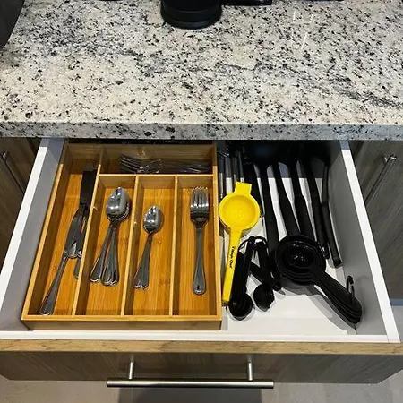 Apartmán Solum Luxury Condos má 1 ložnic a psací stůl, přístroj na přípravu kávy a čaje, TV s plochou obrazovkou se satelitními kanály. Ubytování má také 1 koupelen.